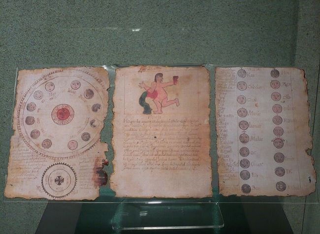 Рукопись Чилам-Балама из Ишиля, экспонированная в Национальном музее антропологии в Мехико